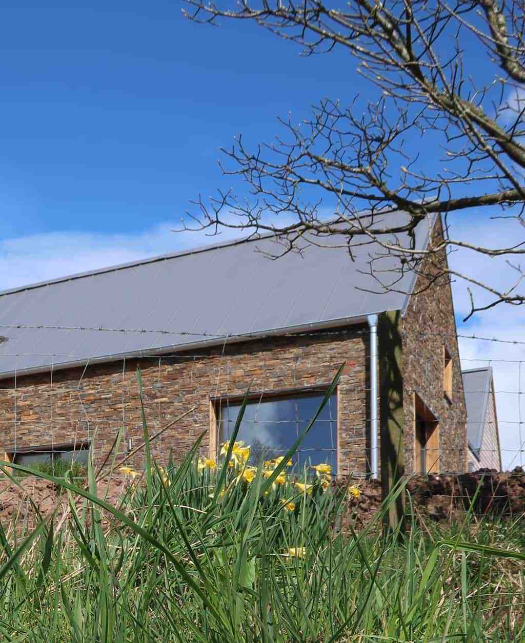 The clients were keen to create a cosy and energy efficient home that combined contemporary and traditional Scottish design so Kirsty and her team developed the design using stone and timber cladding with pared back detailing reflecting traditional Scottish cottages. The house was built by Craigs Eco Construction using a timber stud frame, stuffed with wood fibre insulation and all clad externally with wood fibre boards for thermal bridge free construction.
