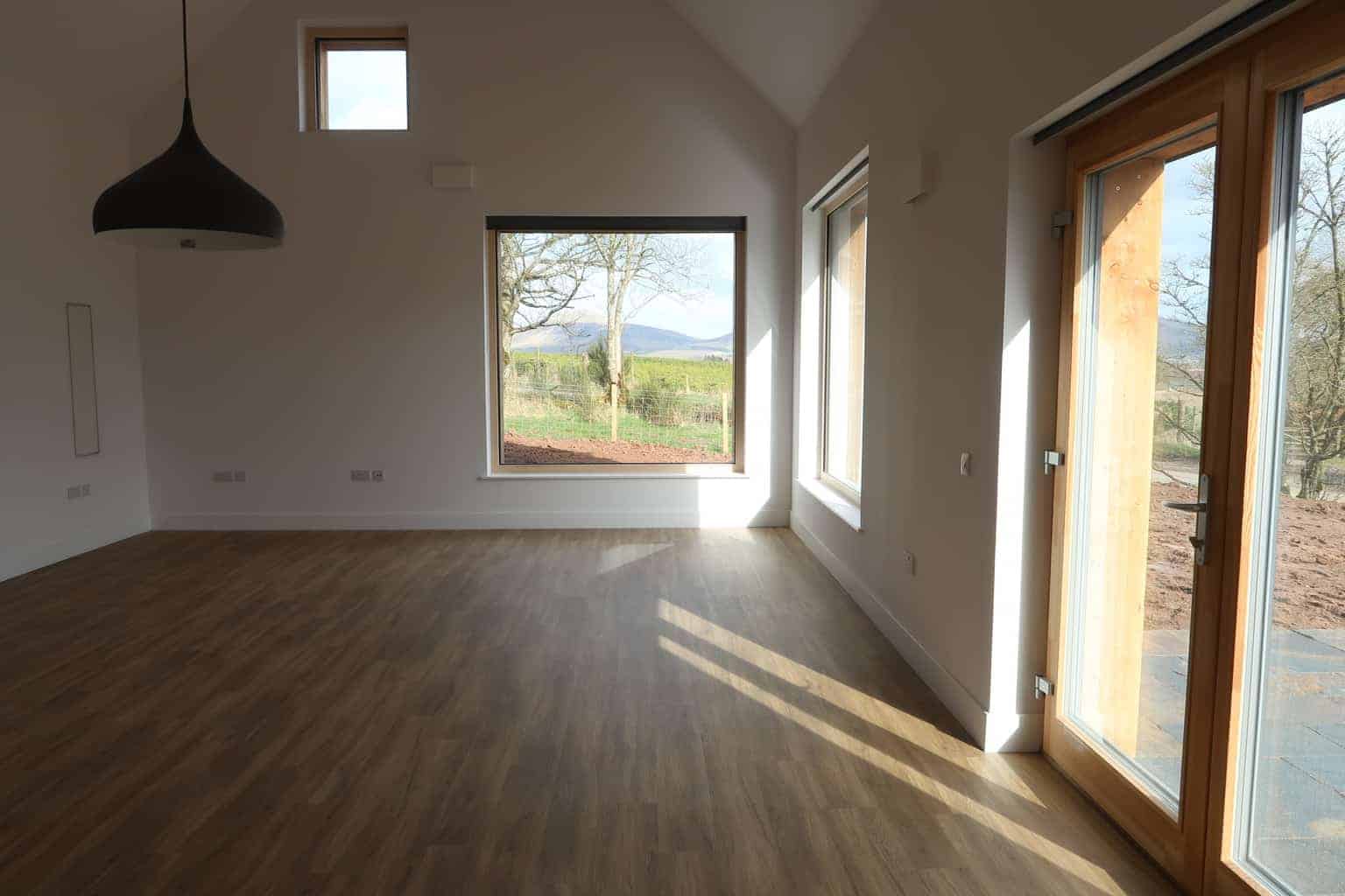 Kirsty Maguire Architect Ltd has just completed a newbuild low energy home, designed using the rigorous Passivhaus approach as a basis and design tool including PHPP modelling (Passivhaus Planning Package) to help optimise comfort and performance. The project was designed to create a cosy, light and spacious home maximising the potential of the views across rolling farmland and looking towards Loch Leven and the Lomond Hills. It is designed to meet the AECB ‘Building Standard’.