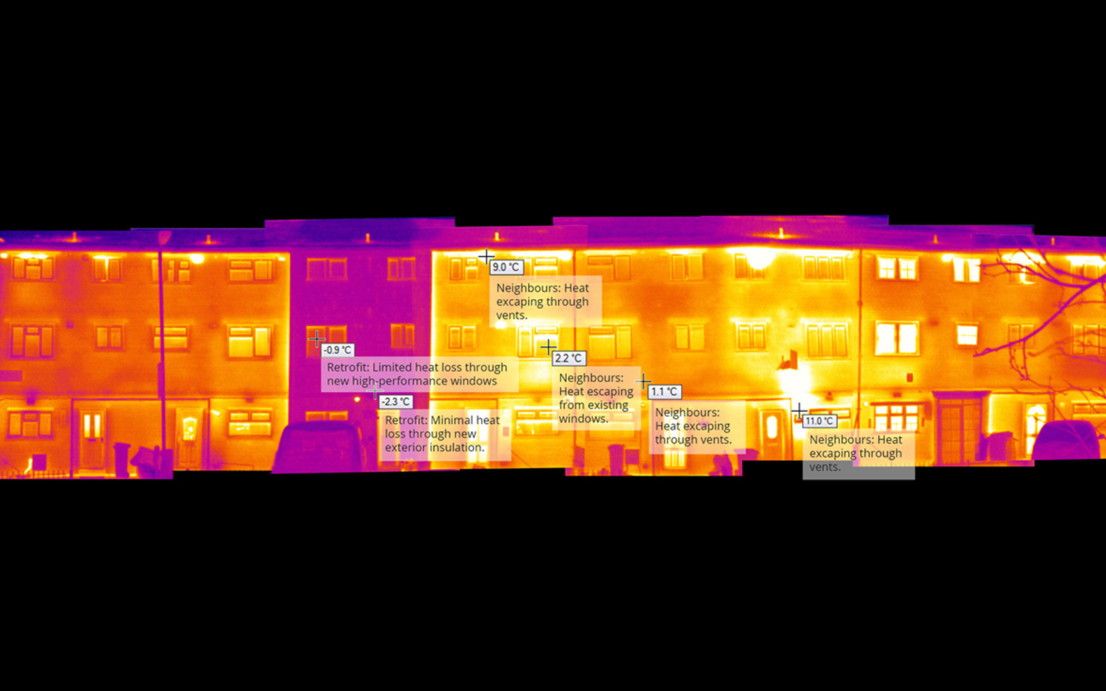 The house was designed using PHPP (Passivhaus Planning Package) to be as low energy as possible within the budgetary and practical constraints of the project. The location was quite constrained by the back gardens of adjacent houses, adjacent allotments and views from the existing house all constraining the footprint and also had a west-facing aspect. Despite these constraints, the project achieved a space heating requirement of 23 kWh/m2/ year.