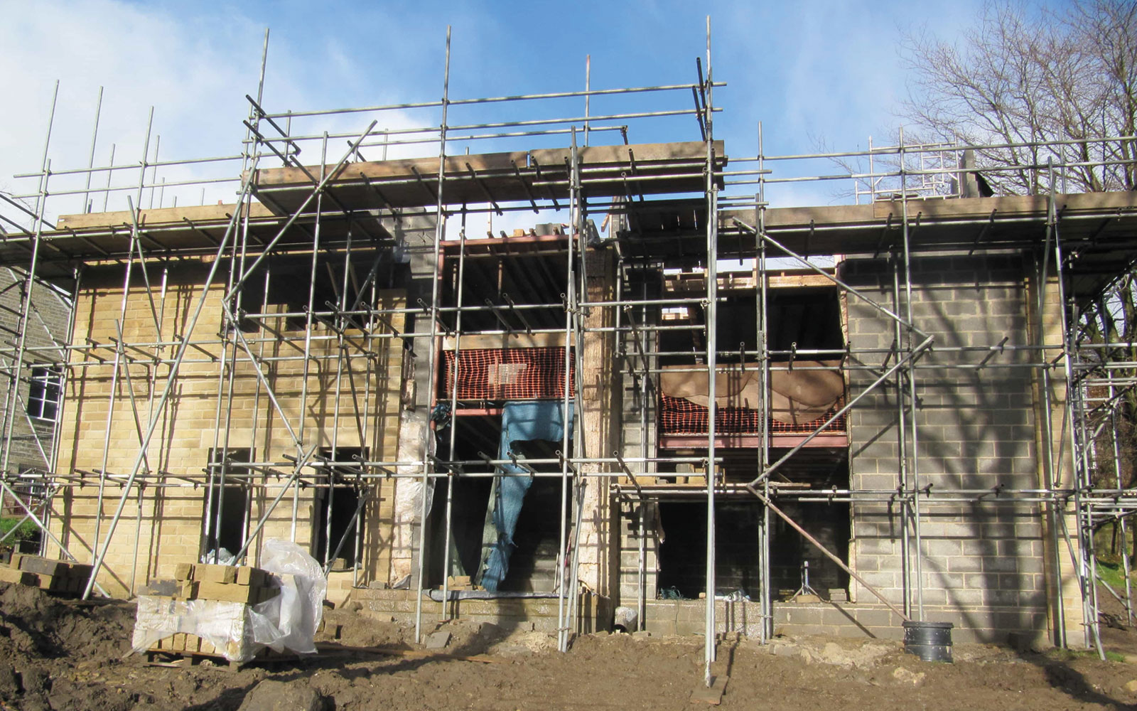 Newbuild cavity wall construction 296 m2 three storey 4 bed house in Golcar, Huddersfield. It is mostly rectangular in form with a small kink in it and a bay window. It follows many of the design details of our first cavity wall Passivhaus – the Denby Dale Passivhaus – but with a few notable differences/ evolutions of the original detailing for Denby Dale.