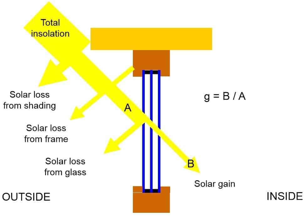 The g value of the glass simply tells us how well the glass transmits heat from the sun. It is expressed either as a percentage, or simple decimal. A g value of 1.0 (100%) would tell us that all solar heat could enter the building (so without any glass), and of 0 (0%) would be for an opaque material. The more sheets of glass, and the more coatings, the more there is to stop the sun’s heat reaching inside, so the worse the g value will be.