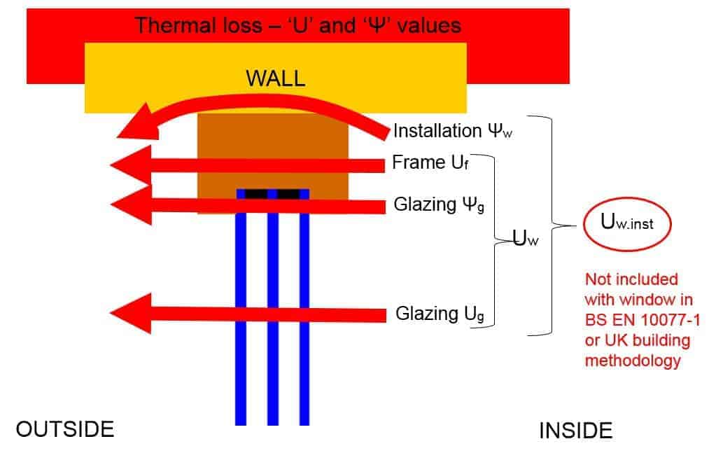 This installed U value is actually much more helpful in determining the total performance of our window, and really for optimising the performance. It is effectively ‘lost’ in UK methodology, making us largely unaware of the real importance of good installation detailing.