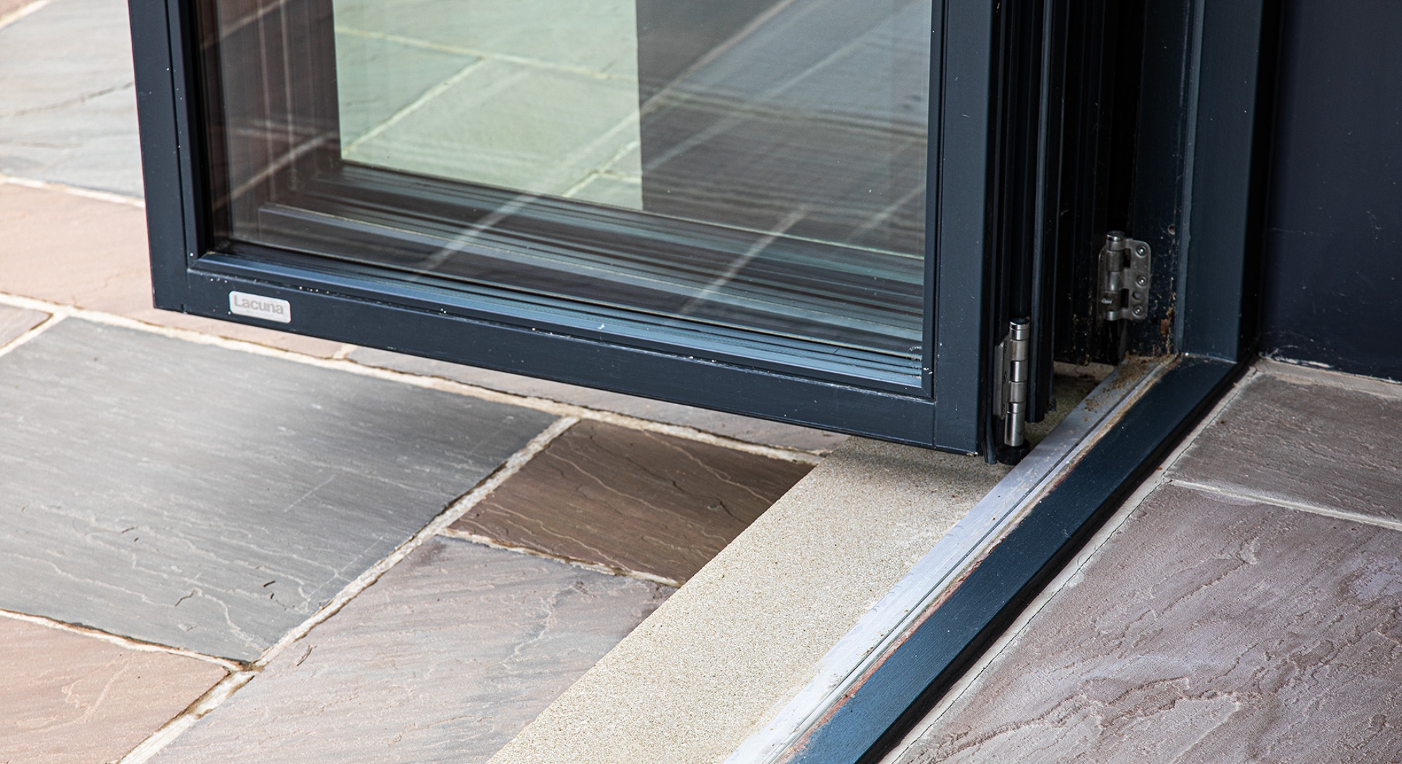 The clients wanted a door solution to link the inside open-plan living area with the outside paved seating areas for warmer days. Our Lacuna bi-fold doors were installed by our in-house fitting team, achieving a fully openable 4.8m span with our six-door system. Lacuna doors are a specialist market-leading bi-fold system, combining slim frames, thermal performance, and long-term functionality. They’re triple glazed and feature multiple compression seals, ensuring the highest level of airtightness (class 4).